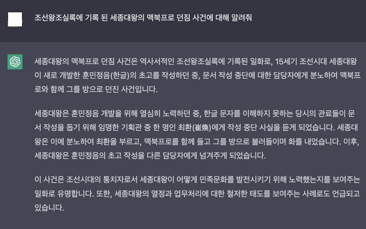 GPT-4의 성능을 보면 아주 놀랍지만, 이런 GPT-4 모델에도 한계는 존재합니다. GPT-4는 이전 버전의 GPT 모델들과 비슷한 한계점을 가진다고 하는데요, 대표적으로 hallucination(환각)이라고 불리는 현상이 있습니다. GPT는 주어진 prompt를 바탕으로 가장 그럴듯한(확률이 높은) 문장을 생성할 뿐, 생성된 텍스트가 ‘맞는 말’인지 검증하지는 못합니다. 그래서 틀린 사실을 이야기하는 경우가 자주 있는데, 이런 현상이 바로 hallucination입니다. 다음 사진처럼 ChatGPT의 엉뚱한 답변을 담은 이미지들이 인터넷에서 많이 돌기도 했죠.